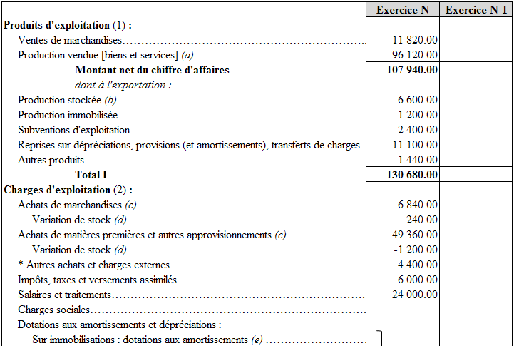 Analyse de l'activité et du tableau de résultat - Résultats par nature