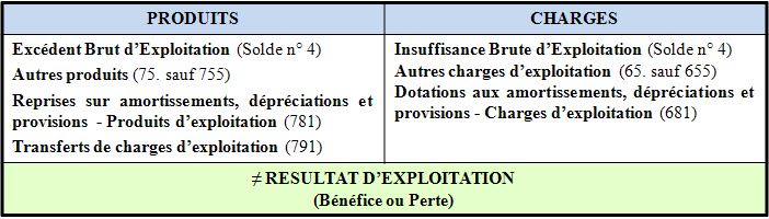 Ce solde intermédiaire se retrouve dans le tableau de résultat en liste par différence entre les produits et les charges d’exploitation d’où un contrôle possible.