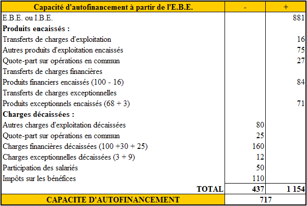 La capacité d'autofinancement (CAF) à partir de l'excédent brut d'exploitation (EBE)