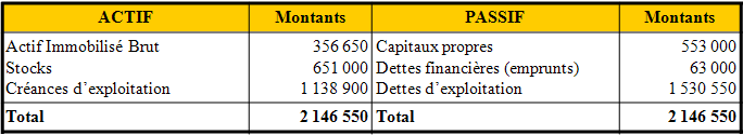 Calculer l e Fonds de Roulement Net Global (FRNG) par le haut et par le bas du bilan.