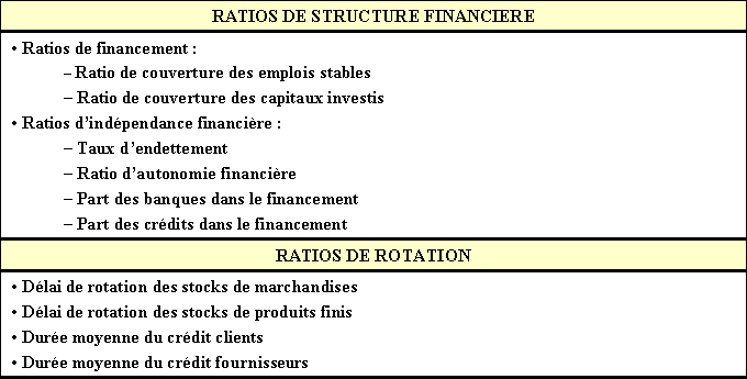 Chapitre 1. RATIOS DE STRUCTURE FINANCIERE