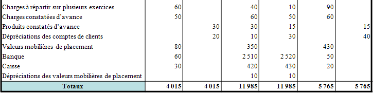Balance des comptes de bilan (en milliers d'euros)