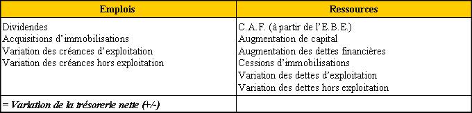 Par conséquent la variation de trésorerie nette peut être analysée à partir :