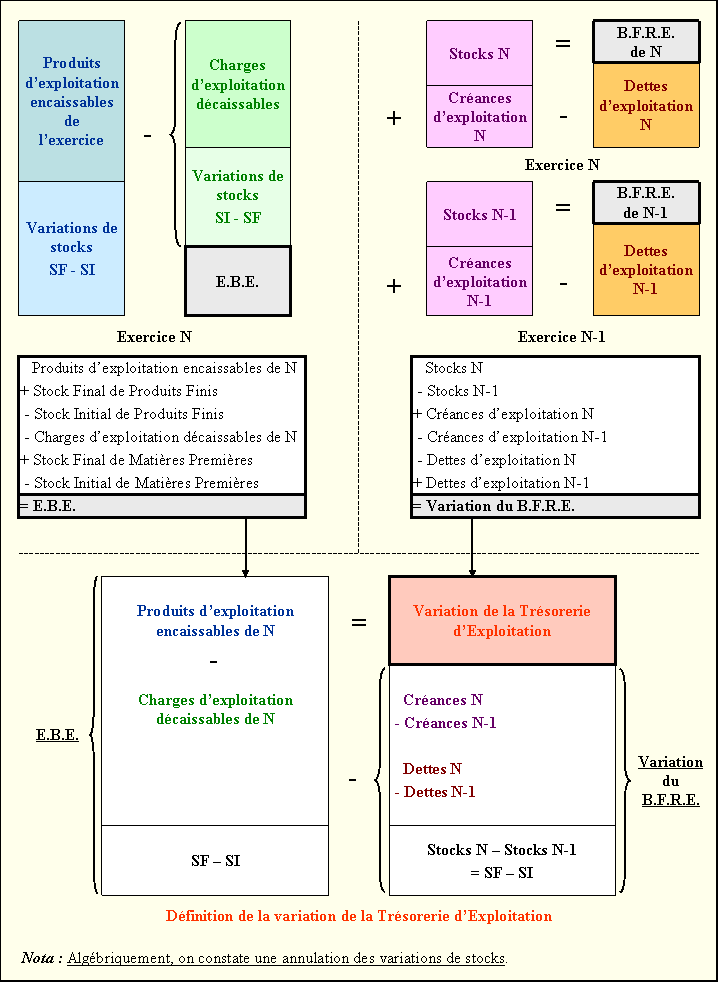 VARIATION DE LA TRESORERIE D'EXPLOITATION A PARTIR DE L'E.B.E. ET DU B.F.R.E.