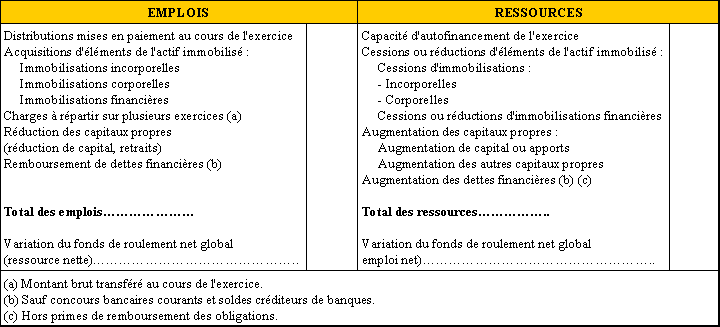 TABLEAU DE FINANCEMENT - PARTIE I