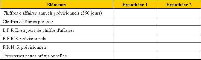 Tableau de calcul du B.F.R.E. et de la Trésorerie Nette prévisionnels