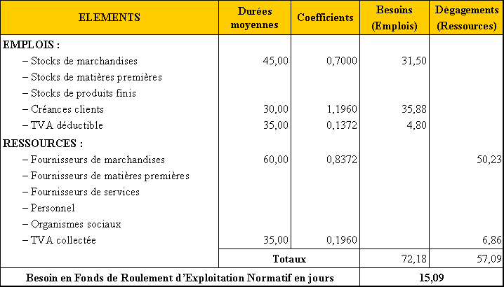 Tableau d'évaluation du B.F.R.E. normatif selon la méthode directe