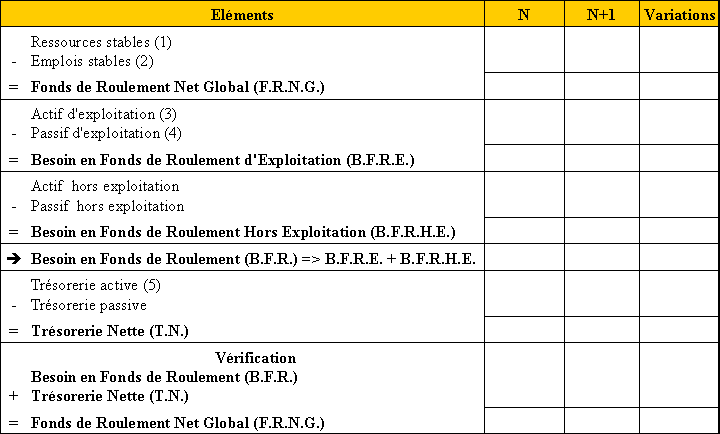 TABLEAU D'ANALYSE DES BILANS FONCTIONNELS