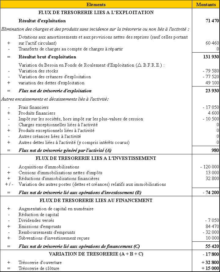 TABLEAU DES FLUX DE TRESORERIE de l'O.E.C. à partir du résultat d'exploitation