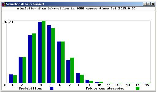 · on simule un échantillon d’une loi de probabilité théorique connue (par exemple, la loi binomiale de paramètres n = 15 et p = 0.3)
